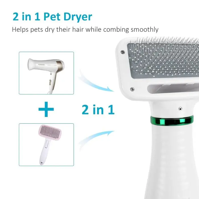 Nuestro cepillo 2 en 1 combina calor suave + peine quita pelos para que el momento del baño o el peinado sea más cómodo, rápido y sin estrés ni para vos ni para tu mascota.