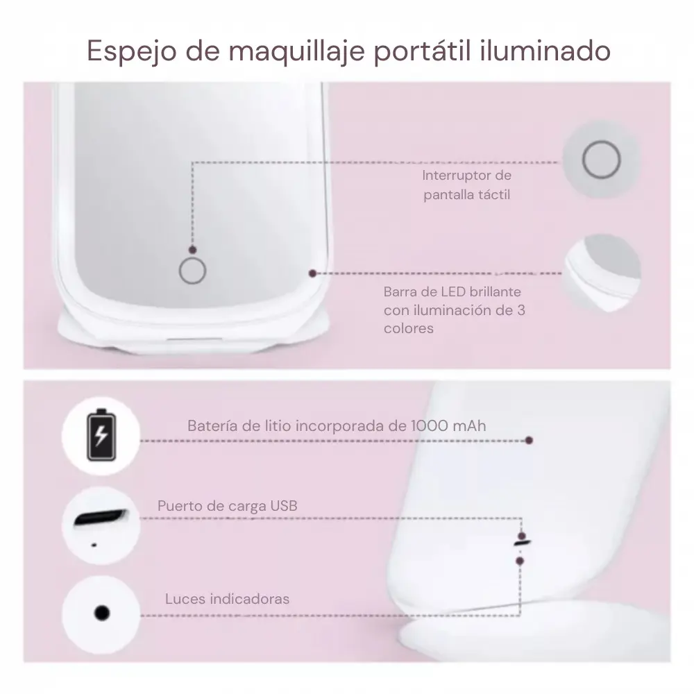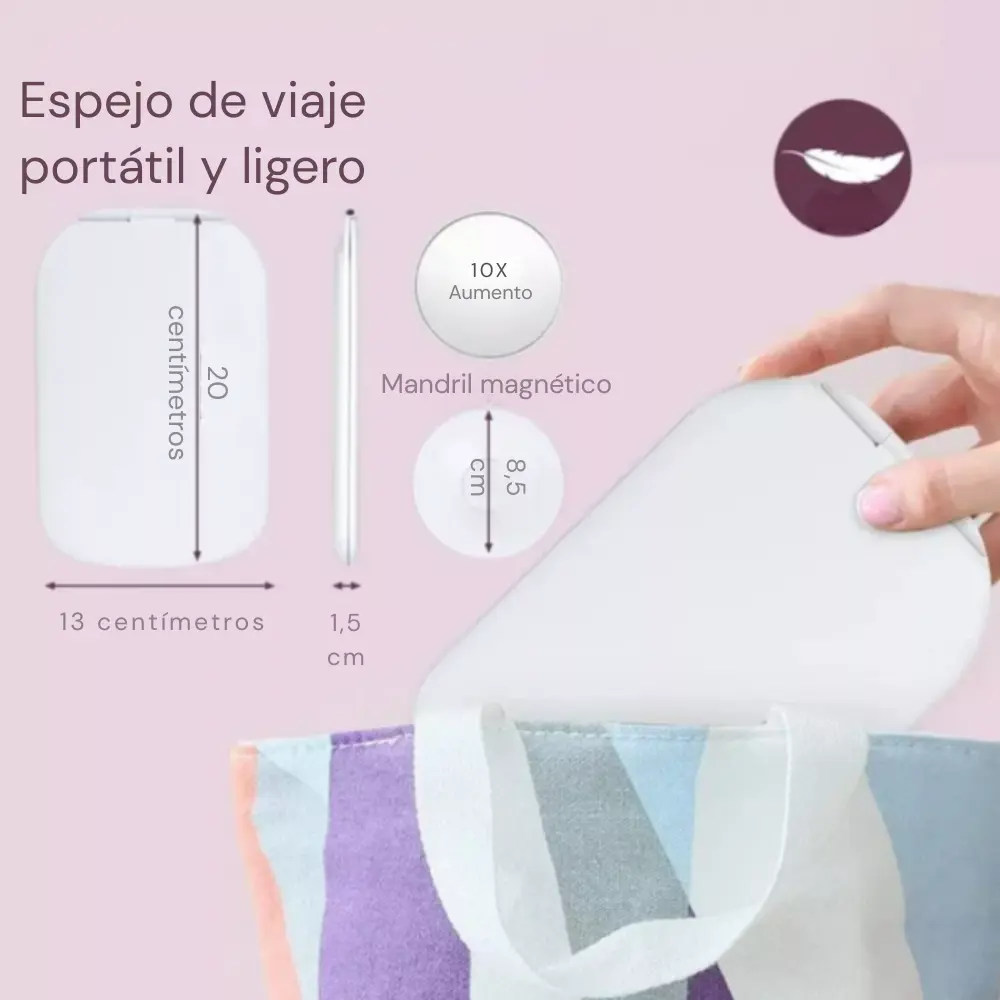 Llevá tu rutina de belleza a otro nivel con nuestro espejo de viaje con luz LED, un accesorio compacto, elegante y práctico que se convertirá en tu aliado diario.