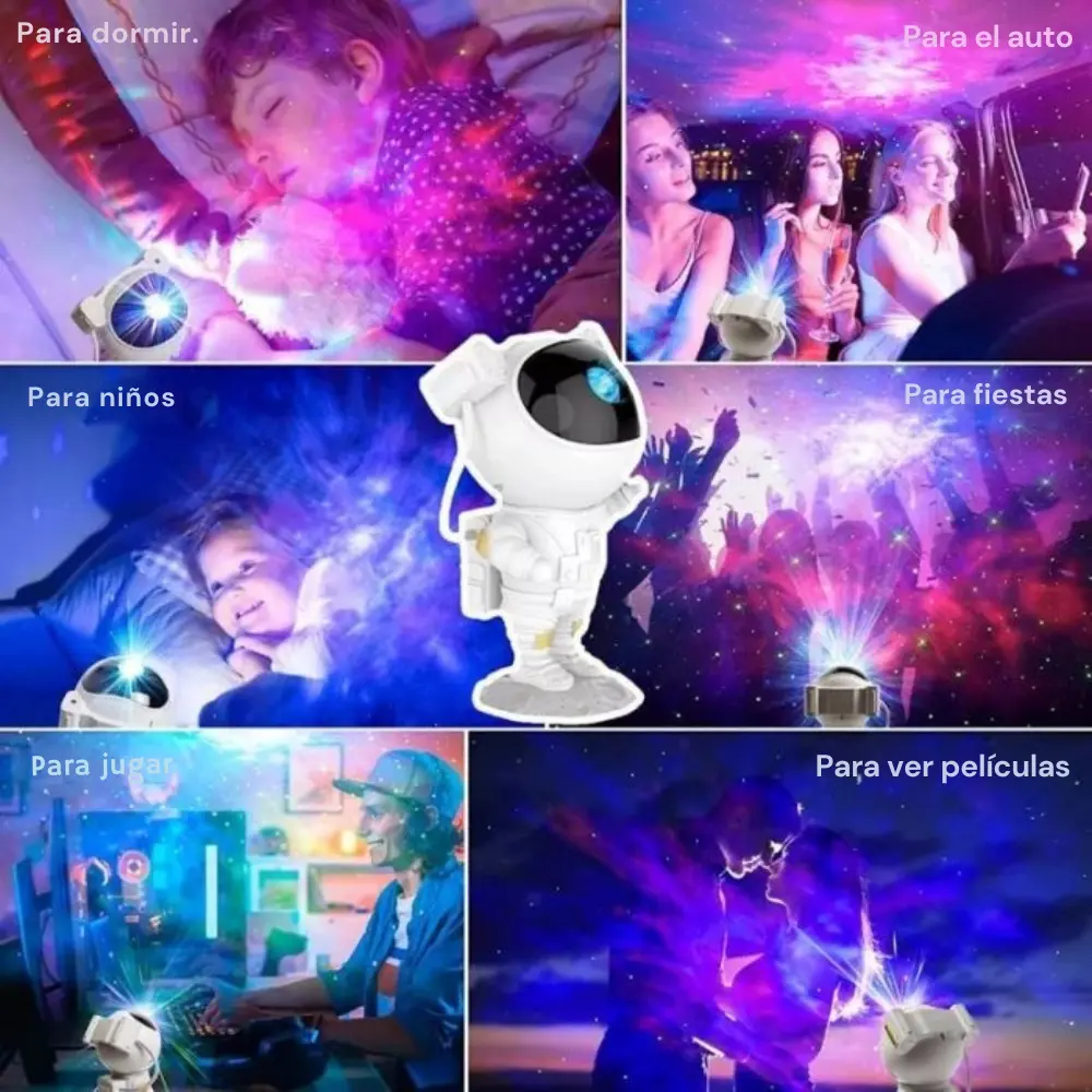 Convertí tu habitación en un universo mágico ✨. Este proyector de galaxias en forma de astronauta combina efectos de nebulosas multicolor y estrellas brillantes para crear una atmósfera única, relajante e inspiradora. Ideal como luz nocturna, decoración o regalo original.