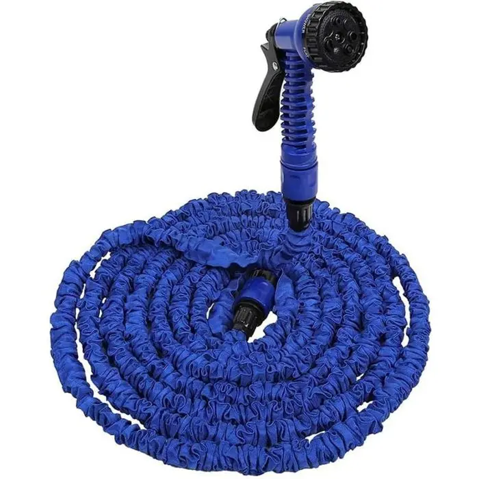 Práctica, resistente y fácil de usar. Esta manguera expandible de 15 metros se adapta a todas tus necesidades de riego y limpieza. Fabricada en látex de alta calidad, es ligera, flexible y mucho más duradera que las mangueras tradicionales.
