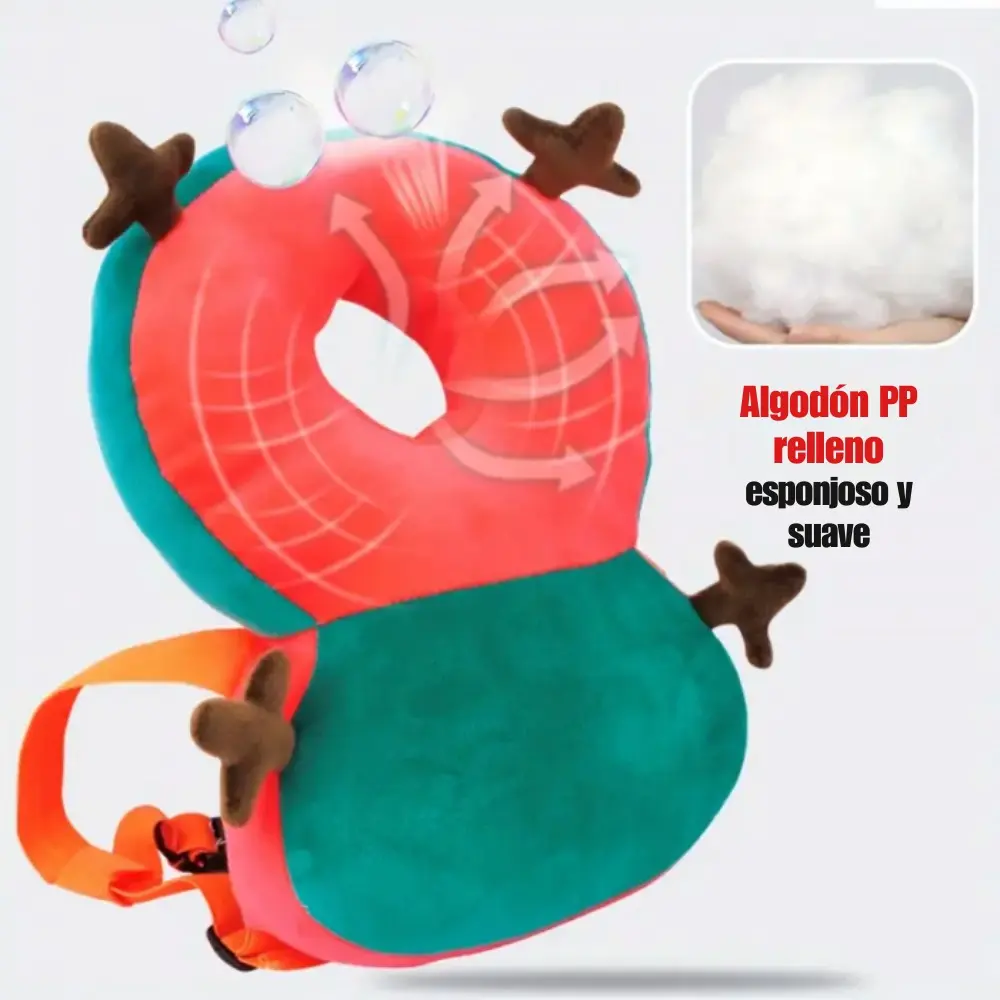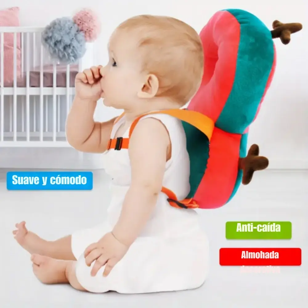 Acompañá con tranquilidad los primeros pasos de tu bebé con nuestra mochila protectora antigolpes, diseñada especialmente para cuidar su cabeza y espalda en cada movimiento.
