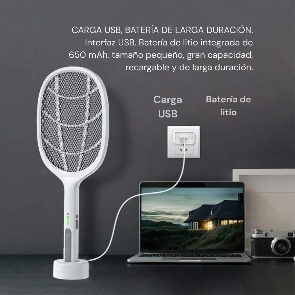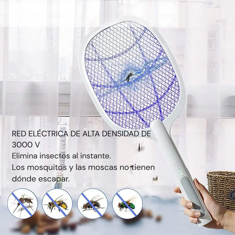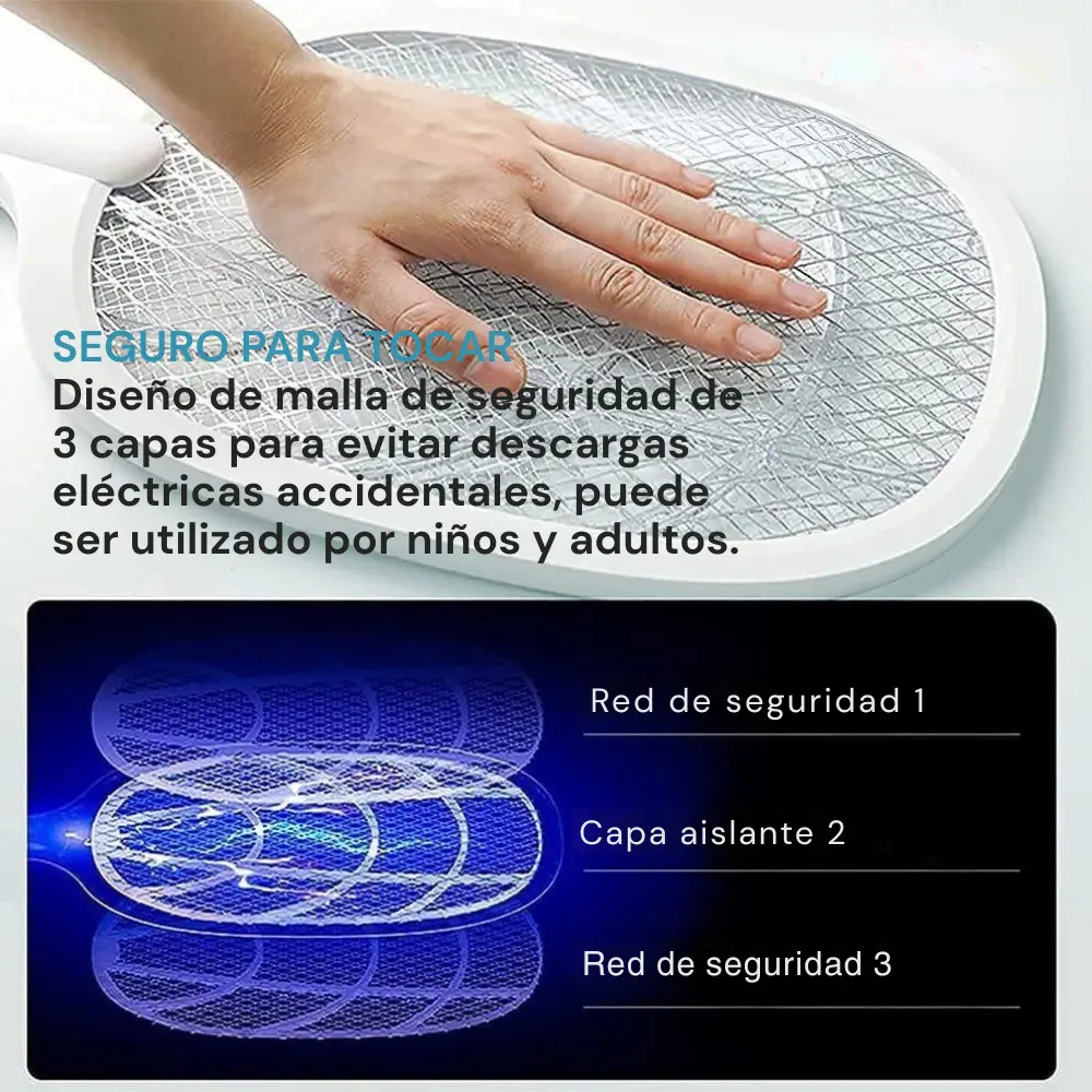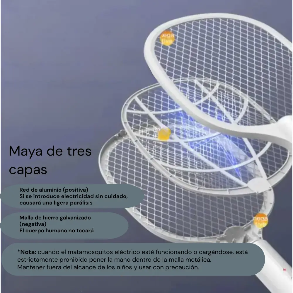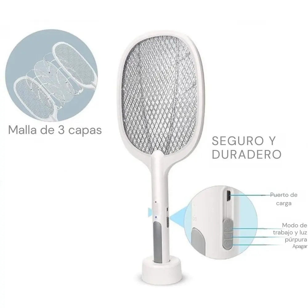 Nuestra raqueta mata mosquitos combina dos funciones claves: su luz UV atrae a los insectos de forma silenciosa y sin quìmicos, mientras una descarga elèctrica los elimina al instante. Un diseño pràctico y ecològico, pensado para quienes priorizan el descanso, el aire limpio la seguridad en casa.